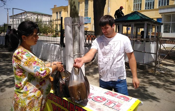 Житель махалли "муллиён" бесплатно раздаёт хлеб людям