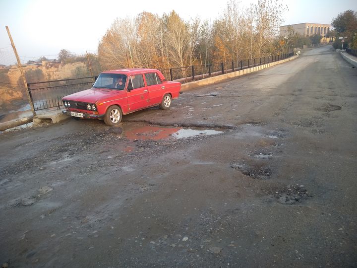 Первый же дождь смыл часть трассы, выходящей на мост. Пассажирский транспорт №№101 и 450-й, а также личные автомобили граждан разбивают свою ходовую часть на глубоких выбоинах, которые здесь образовались. Неужели стоило тратить время и немалые государственные средства для того, чтобы так «капитально» отремонтировать отрезок трассы через Даргом?