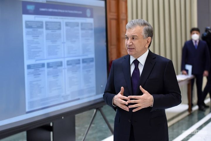 Президент Шавкат Мирзиёев ознакомился с презентацией о развитии туристического потенциала и паломнического туризма в Самарканде.