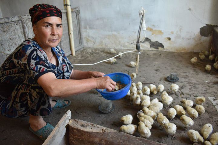 Рохила Бутаева является хозяйкой одной из таких семей в отдаленном МСГ "Бешарик". Она и её муж с инвалидностью, а также дочь ухаживают за цыплятами.