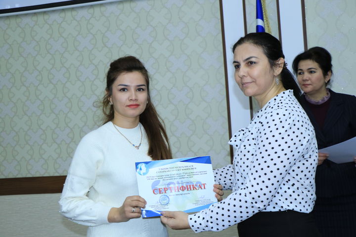 После презентации 32 проектов участницам конкурса были вручены сертификаты. Выбор 11 лучших инновационных проектов ещё предстоит членам жюри. Победители областного этапа примут участие в республиканском этапе конкурса «100 лучших инновационных проектов женщин Узбекистана».