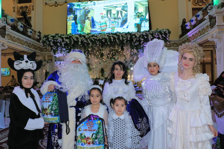 Главное представление – Президентская ёлка – прошло в ресторане «Олтин Самарканд». Здесь Дед Мороз и Снегурочка водили хороводы с детьми из детских домов и специализированных школ-интернатов, малообеспеченных семей и чьи родители погибли, исполняя служебный долг. Ребятишки отгадывали загадки, читали стихи, танцевали под задорные песни.