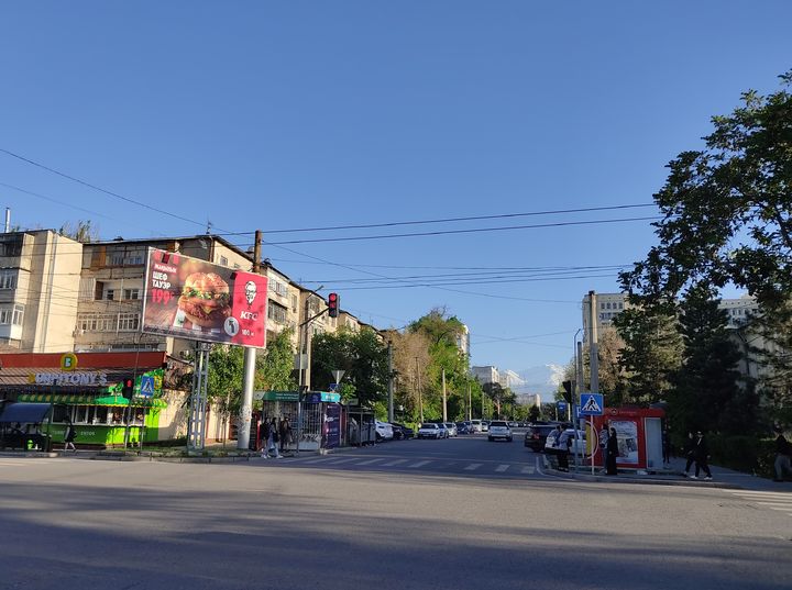 Что сразу бросилось в глаза? Даже на нешироких улицах с вполне интенсивным движением пробок нет, все водители без исключения пропускают пешеходов. Очень много иномарок (своего автопрома нет), и зачастую это машины старые. А поскольку все они ездят на бензине, то являются одним из факторов загрязнения воздуха в Бишкеке, который, по мнению экспертов, наряду с Душанбе лидирует по уровню загрязнённости воздуха в Центральной Азии.