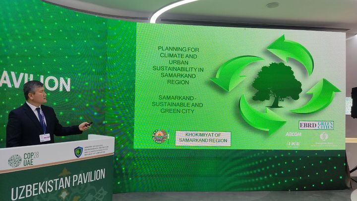Представители хокимията Самаркандской области на 28-й сессии Конференции Сторон Рамочной конвенции ООН об изменении климата в конференц-центре Dubai Expo City провели конференцию на тему «Устойчивые и зеленые города». Была организована встреча с заместителем хокима области Х. Очилова с исполнительным директором Европейского банка реконструкции и развития (ЕБРР) по устойчивому развитию г-жой Нандитой Паршад.