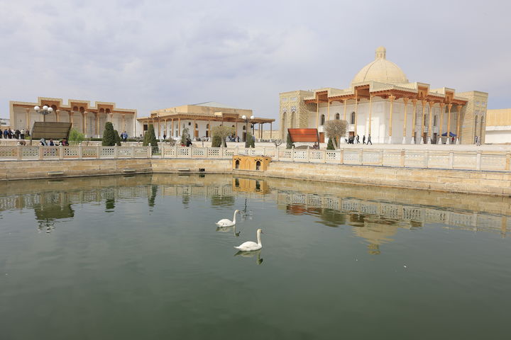 Во второй половине дня мы направились в Вабкент - к мавзолею Ходже Махмуду Анжир Фагнави. На его территории есть красивый колодец со святой водой. По периметру расположены айваны, разбит многосезонный сад. Сам Фагнави был плотником и садовником, и свое прозвище Анжир получил не просто так. Когда-то к хану приехал гость, который вдруг в феврале изъявил желание съесть свежий инжир. К Фагнави был отправлен слуга с требованием сотворить чудо. На зиму в Узбекистане инжир, как известно, прикапывают землей, чтобы он не замерз. И вот на глазах у изумленного слуги чудотворец опустил руку в холмик с инжировым деревом и достал оттуда свежий плод.