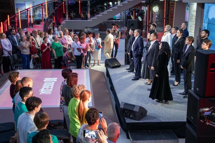Мероприятие сопровождалось живым музыкальным исполнением, видеопроекцией и проникновенным чтением текстов, что создало атмосферу глубокого уважения к истории и подвигу народов Советского Союза.