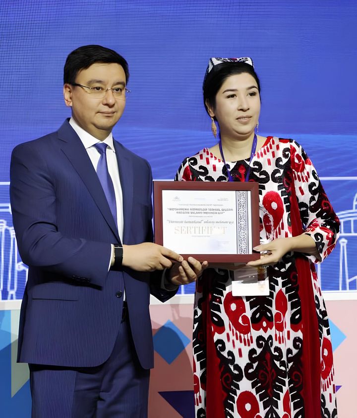 Последний вечер ярмарки стал особенно праздничным, так как подводились итоги, на сцену один за другим поднимались победители конкурса. И среди них - гостевой дом «Дарвозаи Самарканд». На огромном голубом экране появилась фотография и надпись: на сцену приглашается Нозима Саидова из Самарканда, руководитель гостевого дома, удостоенного награды в номинации «Креативный семейный гостевой дом». В лучах прожекторов она получает поздравления, сертификат, цветы. Рядом - ее супруг Вали Мухтаров, сотрудник территориального отделения Министерства цифровых технологий Самаркандской области, а также дочь и двое сыновей.