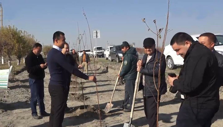 В ходе мероприятия участники заложили основу зеленого пояса на заброшенном земельном участке площадью три га, расположенном на территории махалли «Шейхларкент» вдоль международной трассы М-37. Здесь высадили 1 100 плодовых и декоративных деревьев и кустарников.