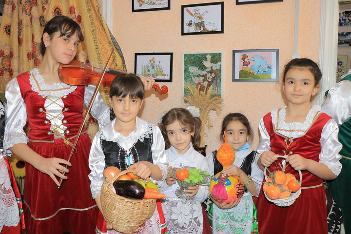 Сразу у входа в здание центра, который напоминает дружный дом немецкого народа, внимание посетителей привлекли красочные фотографии, рассказывающие об истории диаспоры и культурной жизни. Чуть дальше красовался стенд с яркими детскими рисунками, отражающими осеннюю красоту родной природы, сезонные хлопоты в городах и селах, сказки, связанные с «золотой» порой и уборкой урожая. Весь дом был украшен цветами, повсюду стояли корзины с самыми красивыми овощами и фруктами.