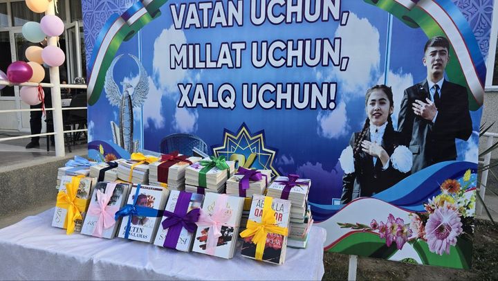 В честь праздника М. Хамдамов передал школьной библиотеке 150 художественных книг. По его словам, это поможет учащимся расширять кругозор и получать еще больше знаний.