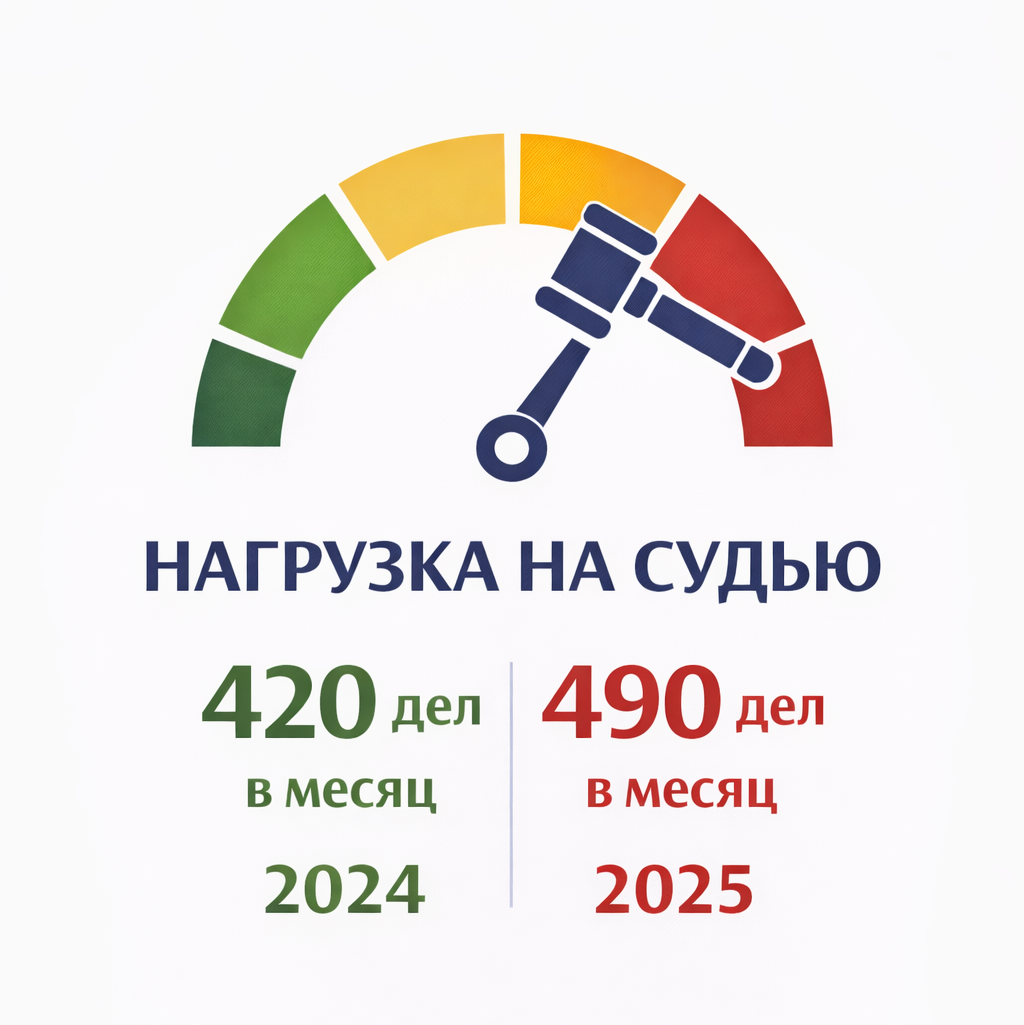 В межрайонном суде средний месячный объем дел, приходящихся на одного судью, составил 490,1 дела, из них 168,5 гражданских дела и 321,6 судебного приказа. Для сравнения, в прошлом году этот показатель составлял 420,4, 143,7 и 276,6 соответственно.