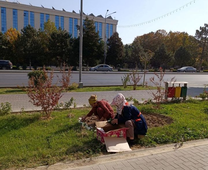 Работники благоустройства, кажется, ведут бесконечную борьбу: высадят герань - ее душит солнце; поставят бугенвиллею - ломает ветер; посадят капусту - начинается спор, красиво это или «слишком по-сиабски». Иногда растения погибают от банальной нехватки воды, ведь арыки местами зацементированы, местами стоят месяцами без воды. Проведенная система орошения тоже ломается и засоряется, а на водовозки не всегда находится вовремя топливо. Погибают и просто потому, что сажали спешно, чтобы успеть к очередному мероприятию.