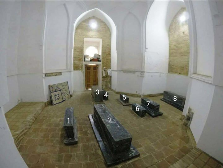 В усыпальнице восемь погребений. На надгробных камнях имеются надписи, дающие сведения о тимуридах.