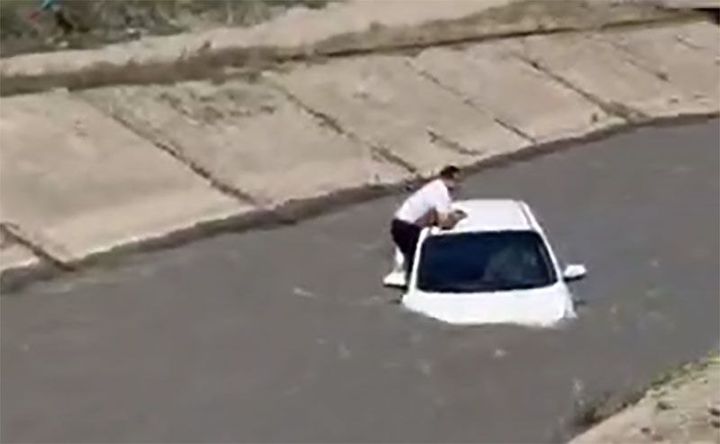Молодой водитель не справился с управлением, и машина вылетела с дороги и упала в канал Шахаб.