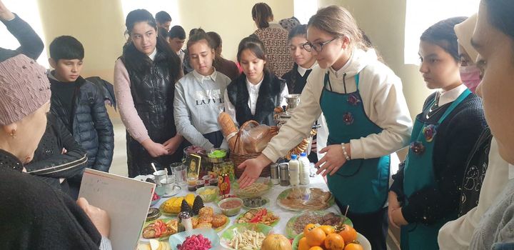 В первый день ноября учителя Н. Саидова, Н. Салахитдинова, Н. Нуруллаева, Д. Пирмамедова и Н. Абдуазизова вместе с детьми красочно оформляют актовый зал, фойе школы и встречают всех с хлебом и солью, веселыми русскими народными танцами и песнями. Словом, создается праздничная атмосфера.