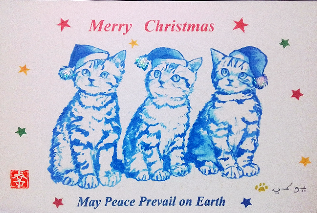 «Сердечного, счастливого, полного радости и мира Рождества! Да благословит вас Господь. Я молюсь за вас и вашу прекрасную страну. Отправляю вам рождественскую открытку, которую я нарисовала к празднику. Надеюсь, она вам понравится. Примите мои наилучшие пожелания!» – Юки Накадзава (Япония).