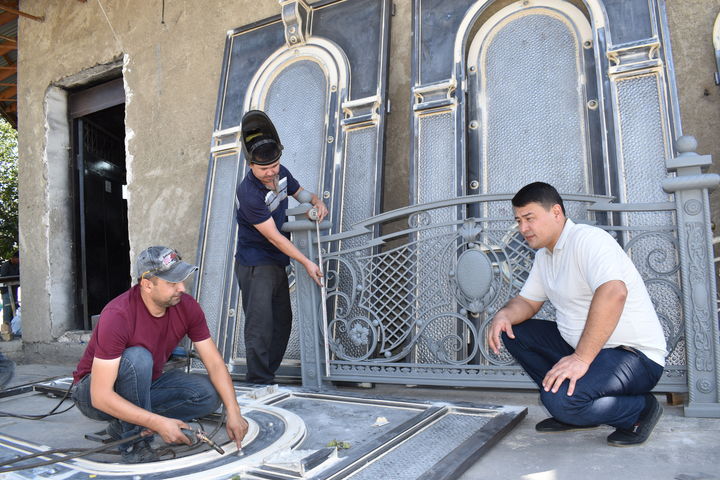 Олим Эргашев проживает в махалле «Эски-Жомбой» и занимается изготовлением ворот из железа и дерева. Сейчас у него обучается более 20 учеников, четверо учеников работают самостоятельно после прохождения государственной регистрации.