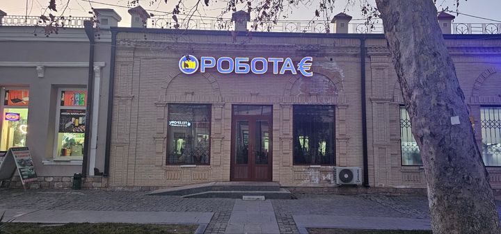В коридорах организации государственные символы, слова Президента, стенды, дни приема руководства, средства пропаганды выставлены на кириллице, и к тому же с орфографическими ошибками. Более десяти средств пропаганды, надписей на папках, журналах регистрации сотрудников ведутся с орфографическими ошибками на кириллице.