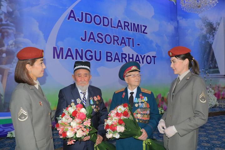 Хоким области Э. Турдимов торжественно вручил участникам Второй мировой войны поздравительные письма от Главы государства, памятную медаль и другие ценные подарки.