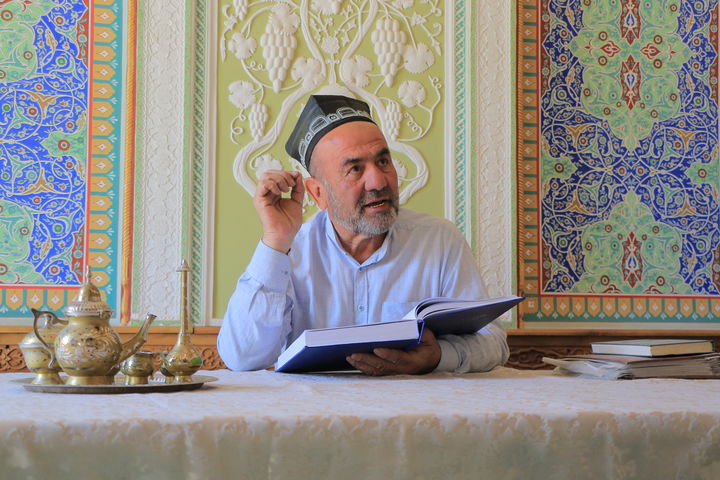 Согласно восточному этикету, мастер наливает чай и приглашает к разговору. Тут начинаешь чувствовать, что он является прекрасным знатоком поэзии, истории. Только после его комментариев обращаешь внимание на то, что в узорах и орнаментах на стенах спрятаны строчки из рубаи, газелей поэтов Востока.