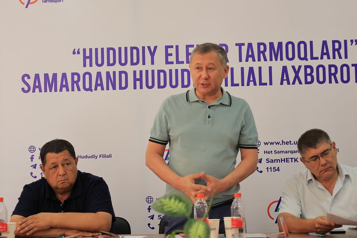 На мероприятии новый руководитель филиала Умид Назаров рассказал о проводимой в нашей области работе по обеспечению бесперебойным электроснабжением населения, отраслей экономики, объектов социальной сферы. Он отметил и резкий рост жалоб абонентов из-за частого отключения электроэнергии. Среди причин отключения он назвал устаревшие коммуникации, которые не менялись на протяжении последних 40 лет, использование электронасосов для полива сельхозугодий, резкий рост потребителей, а также увеличение бытовых электроприборов.