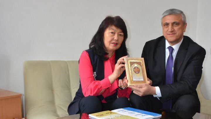 В ходе встречи с директором библиотеки Жылдыз Бакашовой посол К.Рашидов подарил книгу Алишера Навои – «Сокровищница мыслей» и спецвыпуск литературно-художественного журнала «Шарк Юлдузи».