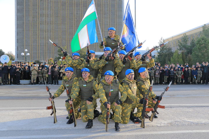 На главной площади Самарканда – Куксарае - состоялся военный парад, где торжественным маршем по площади прошли солдаты и офицеры подразделений Министерства обороны, Министерства внутренних дел, Службы государственной безопасности и других ведомств.