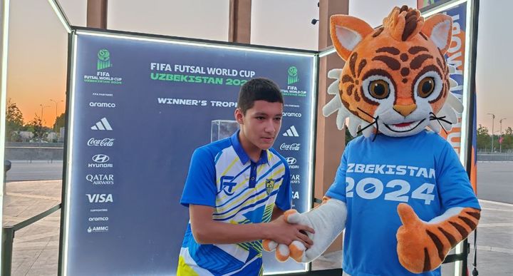 - Футболом занимаюсь уже более двух лет и считаю его одним из самых лучших видов спорта, - говорит ученик общеобразовательной школы №6 города Самарканда Жасурбек Хасанов. - Поэтому с удовольствием принимаю участие в мероприятиях, связанных с ним. В туристический комплекс Silk Road Samarkand, где прошло торжество, приехал вместе с тренером и другими воспитанниками футбольной секции. Было здорово: мы играли, участвовали в конкурсах, получали призы и, конечно же, фотографировались с кубком и талисманом чемпионата мира по футзалу. Во время чемпионата, безусловно, буду болеть за наших футболистов.