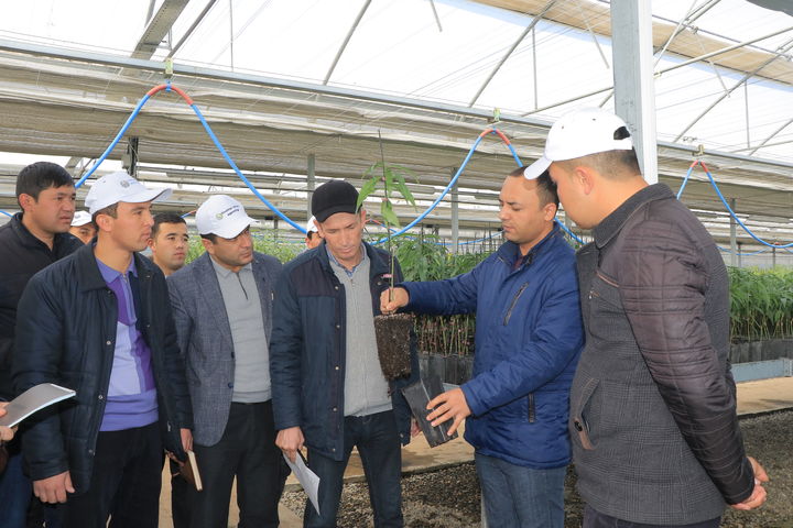 Первым местом посещения стала современная лаборатория с технологией микроклонального размножения фруктовых и декоративных деревьев In vitro. Здесь для участников мероприятия была организована экскурсия по тепличному хозяйству, где выращиваются от 15 до 20 миллионов культивированных саженцев. Проектная стоимость научной лаборатории составляет $ 2,5 млн.