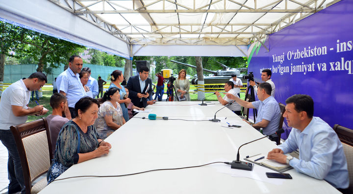 Выездной прием открыли заместитель советника Президента по защите прав граждан, контролю и координации работы с обращениями физических и юридических лиц Алишер Усманов и хоким области Эркинжон Турдимов. Отмечалось, что на основе изучения обращений, поступающих в выездных приемах граждан, можно определить, на каких участках имеются проблемы, в деятельности ответственных лиц каких учреждений допускается промедление.