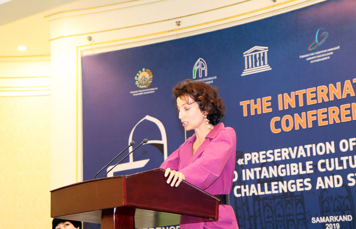 Выступившая затем генеральный директор ЮНЕСКО госпожа Одри Азуле поблагодарила руководство Узбекистана за организацию конференции на высоком уровне. Она отметила, что ее проведение в Самарканде имеет важное историческое значение.
