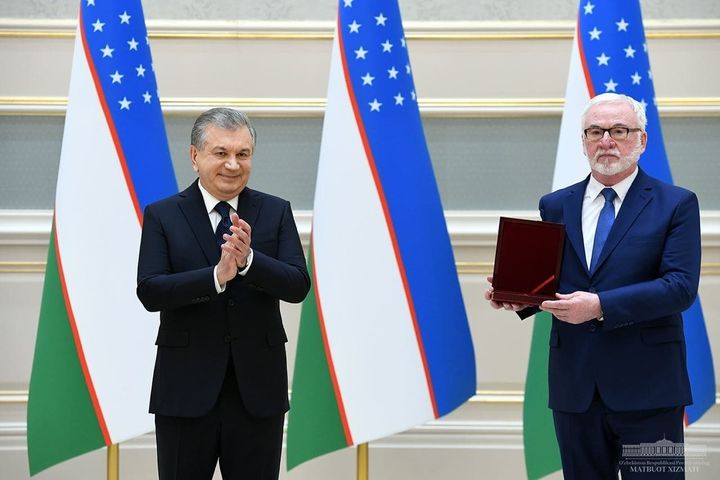 В минувшем году, накануне Дня учителей и наставников, Указом Президента среди представителей джадидского движения наш предок Махмудходжа Бехбуди был удостоен высшей награды страны - ордена «Буюк хизматлари учун». И 28 декабря 2020 года на торжественной церемонии в резиденции Куксарой я получил эту награду из рук нашего уважаемого Президента.