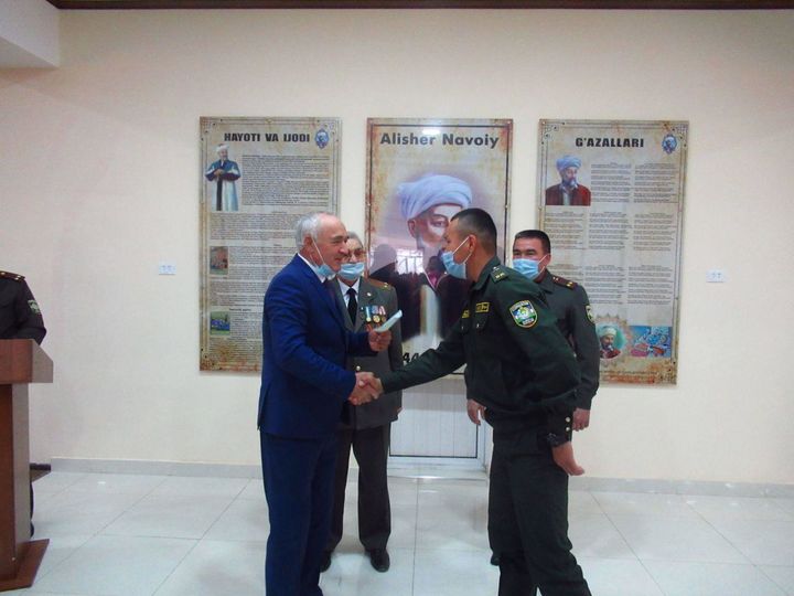 В завершение мероприятия был зачитан приказ командира воинской части о выдаче рекомендаций военнослужащим, набравшим высокие баллы по результатам боевой и духовно-воспитательной подготовки и теста ГТЦ для поступления на учебу в высшие образовательные учреждения Республики Узбекистан на льготной основе.