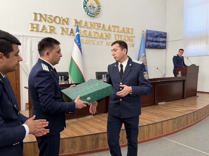 В ходе торжественного собрания в соответствии с приказами Генерального прокурора Республики Узбекистан, директора Бюро и начальника областного управления «О поощрении группы сотрудников в связи с Днем работников органов прокуратуры», состоялась церемония награждения отличившихся сотрудников. Высокие награды были вручены их достойным обладателям в торжественной обстановке начальником управления. Мероприятие прошло в атмосфере уважения, признания заслуг и профессиональной солидарности.