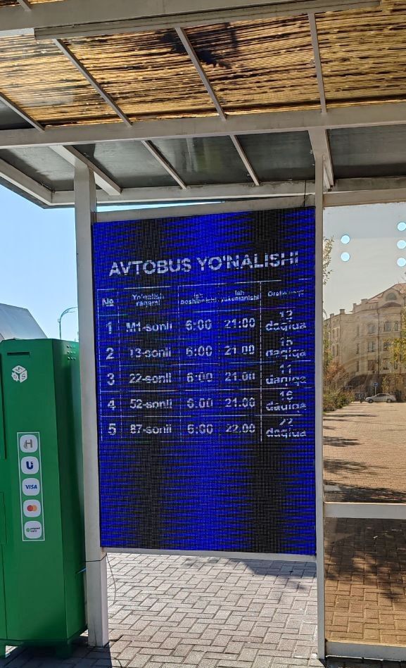 В Самарканде на некоторых остановках заработали онлайн-табло с расписанием автобусных маршрутов