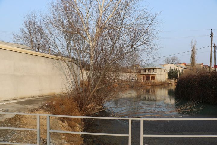 Мы переходим дорогу и идем по бетонной набережной, отмечая аккуратность работы по благоустройству, но сетуем на зауженность канала, чрезмерное увлечение камнем на склонах арыка и кое-где спиленные деревья. К сожалению, в большей или меньшей степени, мы видели остовы деревьев на протяжении всего нашего пешего марафона. Замечали и выведенные в Сиаб не только дренажные трубы, но и канализационные, о чем будет рассказ ниже.
