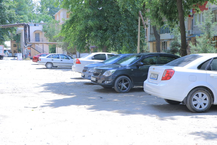 На протяжении нескольких лет жители девятиэтажного дома № 144 по улице Беруни просят установить вблизи их дома детскую площадку, но безрезультатно. Председатель ширката говорит о том, что у них нет денег, председатель махалли вообще не думает о детях, планируя построить на пустующем участке махаллинский «айван» для проведения поминальных обрядов. Якобы многофункциональный «айван» из легкой конструкции послужит народу для проведения собраний и т. д. А тем временем на месте, где могла бы быть детская площадка, сейчас бесплатная парковка, на которой дети пытаются играть в футбол, но каждый раз они покрываются матом, если мяч попадает в авто. В 50 метрах от дома есть платная парковка, но владельцам авто удобно парковаться близи дома, здесь действует правило: «зачем платить, если можно бесплатно». Правда, вблизи дома есть зацементированный проход, но и тот опасен для игр детей. Здесь нет перегородок у подвала и в случаи неосторожности можно оказаться в подвале. Были случаи, когда дети падали в подвал, глубиною больше метра. По этому поводу жители не раз жаловались в ширкат, о проблеме знают и в областном управлении жилищно-коммунального хозяйства, но проблема остается нерешенной.