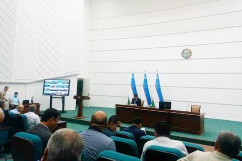 Начальник Зарафшанского бассейнового управления Ф. Раджабов доложил о работе, проводимой в регионе в рамках программы строительства, реконструкции и ремонта ирригационных и мелиоративных сооружений на 2021-2023 годы.