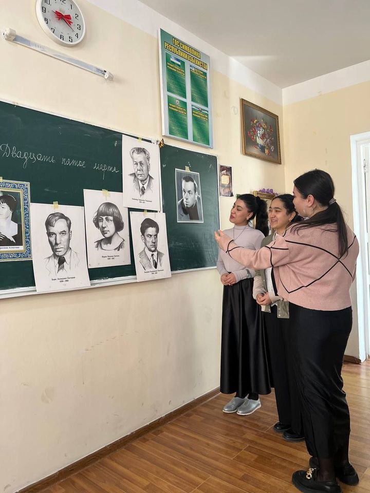 Р. Джураева познакомила ребят со стихотворением Э. Асадова «Я тебя буду очень ждать», а Ж. Махмуджанова прочитала шуточное стихотворение на таджикском языке «Рухшона», посвятив его своей сокурснице.