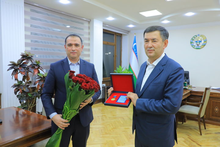 Хокиму области Эркинжону Окбутаевичу Турдимову вручен нагрудный знак «Soha iftixori», учрежденный агентством «Узархив».